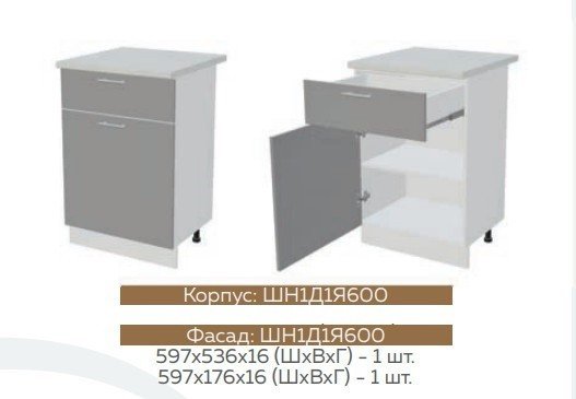 ШН1Д1Я600 Шкаф нижний с 1-м ящиком и 1-й дверью Белый снег софт/Графит софт