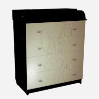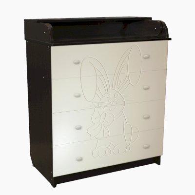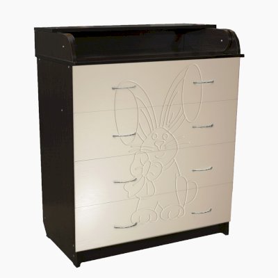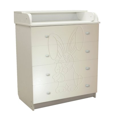 Вам понравится привлекательный внешний вид детского комода. На его лицевой части вы увидите углубленный декор в виде зайца с бантом.