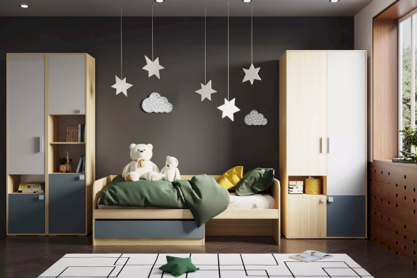 Традиционный цвет баунти динамично подчеркивает контраст маренго – цвета темной морской волны. Спинки кровати имеют скругленные края, что исключает риск случайных повреждений во время сна и активного времени ребенка. Кровать оснащена выдвижным ящиком для оптимального использования пространства. Его можно оборудовать как слева, так и справа, что позволит индивидуально подобрать нужное положение для удобства размещения вещей ребенка.