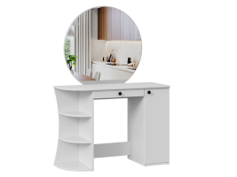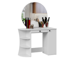 Помимо внешней привлекательности стол имеет большое круглое зеркало, вместительную столешницу под которой располагается как открытая ниша для хранения, так и с дверцей, где можно разместить все необходимые аксессуары и косметику. Такое количество мест для хранения позволит Вам сократить время на создание своего неповторимого образа.