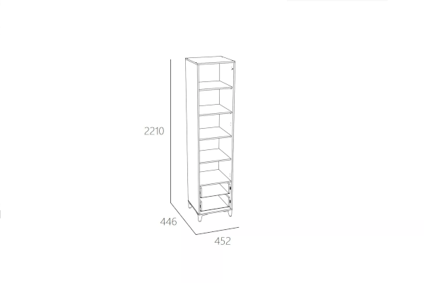 Шкаф-пенал «Морти» – обустроен 5 нишами-полками  и двумя выдвижными ящиками, что превращает его в удобное и вместительное место для хранения. Такой шкаф хорошо использовать для декорирования комнаты. Вы можете легко вписать этот предмет интерьера в пространство любой площади.