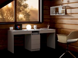 Письменный стол обладает лаконичным дизайном и поэтому впишется в любой интерьер. Поставьте его в детскую, офис, рабочий и учебный кабинет. Классическая прямоугольная столешница позволяет разместить на ней все необходимые вещи, в том числе ноутбук, монитор, клавиатуру и настольную лампу. Имеется 3 вместительных ящика посередине на шариковых направляющих, а также под каждым рабочим местом. Стол рассчитан на двух детей.