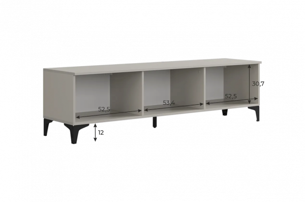 Тумба оснащена тремя распашными дверцами, которые открывают доступ к просторным внутренним полкам, идеально подходящим для хранения посуды, бытовой техники, аксессуаров или других предметов. Металлические ручки придают изделию современный вид и удобство в использовании.