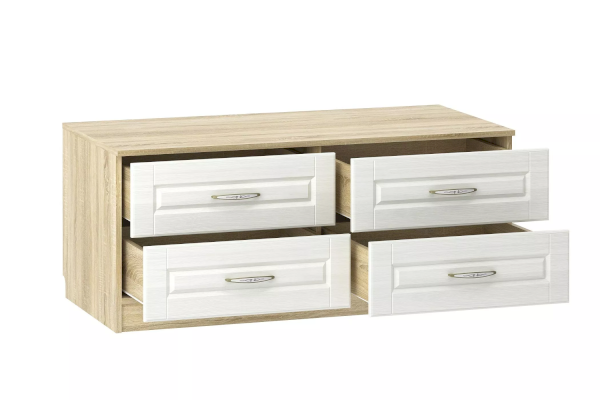 Тумба Оливия НМ 040.48 Ф может быть частью набора или выступать в качестве самостоятельного элемента гостиной. На широкой столешнице достаточно места для размещения и ТВ, и предметов декора. Тумба оборудована четырьмя выдвижными ящиками для хранения книг, документов и аксессуаров.