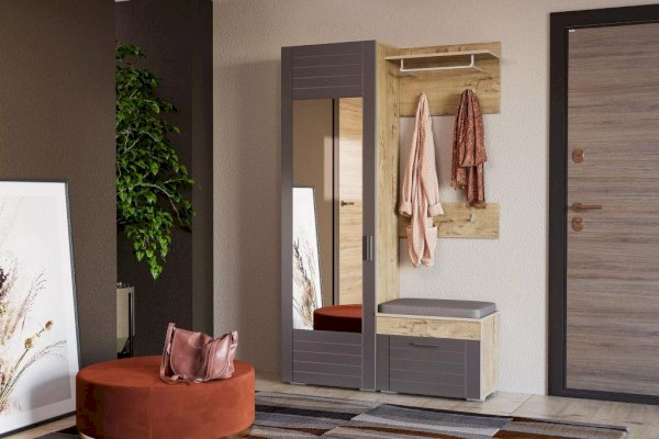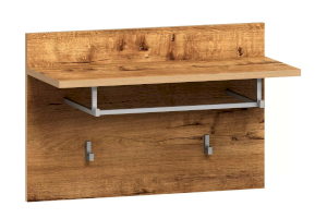 С вешалкой Livorno вся нужная верхняя одежда будет сразу в одном в месте. Модуль представляет из себя настенную панель с двумя крючками. В верхней части вешалки находятся полка для головных уборов и штанга для размещения одежды на вешалках-плечиках.