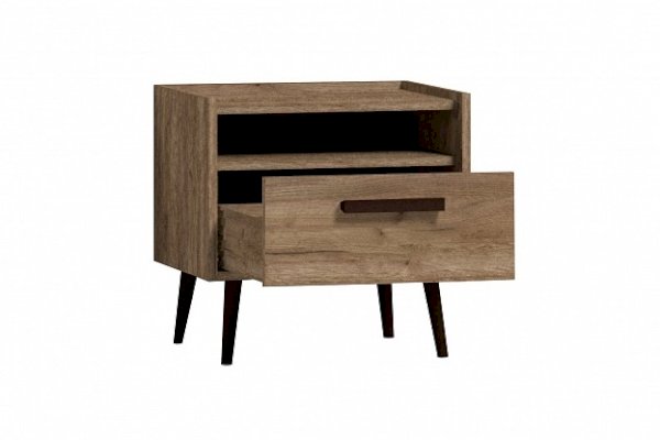 Элегантная и легкая тумба прикроватная 41 с 1-им выдвижным ящиком станет прекрасным дополнением к кровати коллекции Nature. Аккуратные черные опоры и ручки тумбы прикроватной выполнены из массива дерева. Они подчеркнут естественную красоту древесного декора и добавят мебели роскоши и «характера».